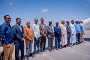 Guddoomiyaha Hayโadda Maareynta Musiibooyinka Qaranka SoDMA waxaa Dhuusamareeb ku soo dhaweeyay masโuuliyiin ka tirsan Galmudug, oo uu ka mid yahay Wasiirka Wasaaradda Gargaarka iyo Maareynta Musiibooyinka Galmudug, Mudane Cabdiraxmaan Maxamed Diiriye (Makaawi), iyo Guddiga Abaaraha Galmudug.