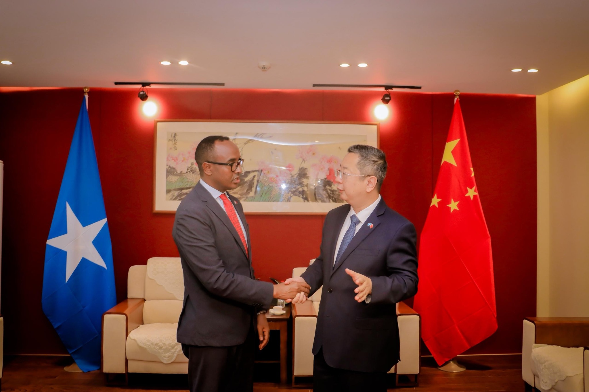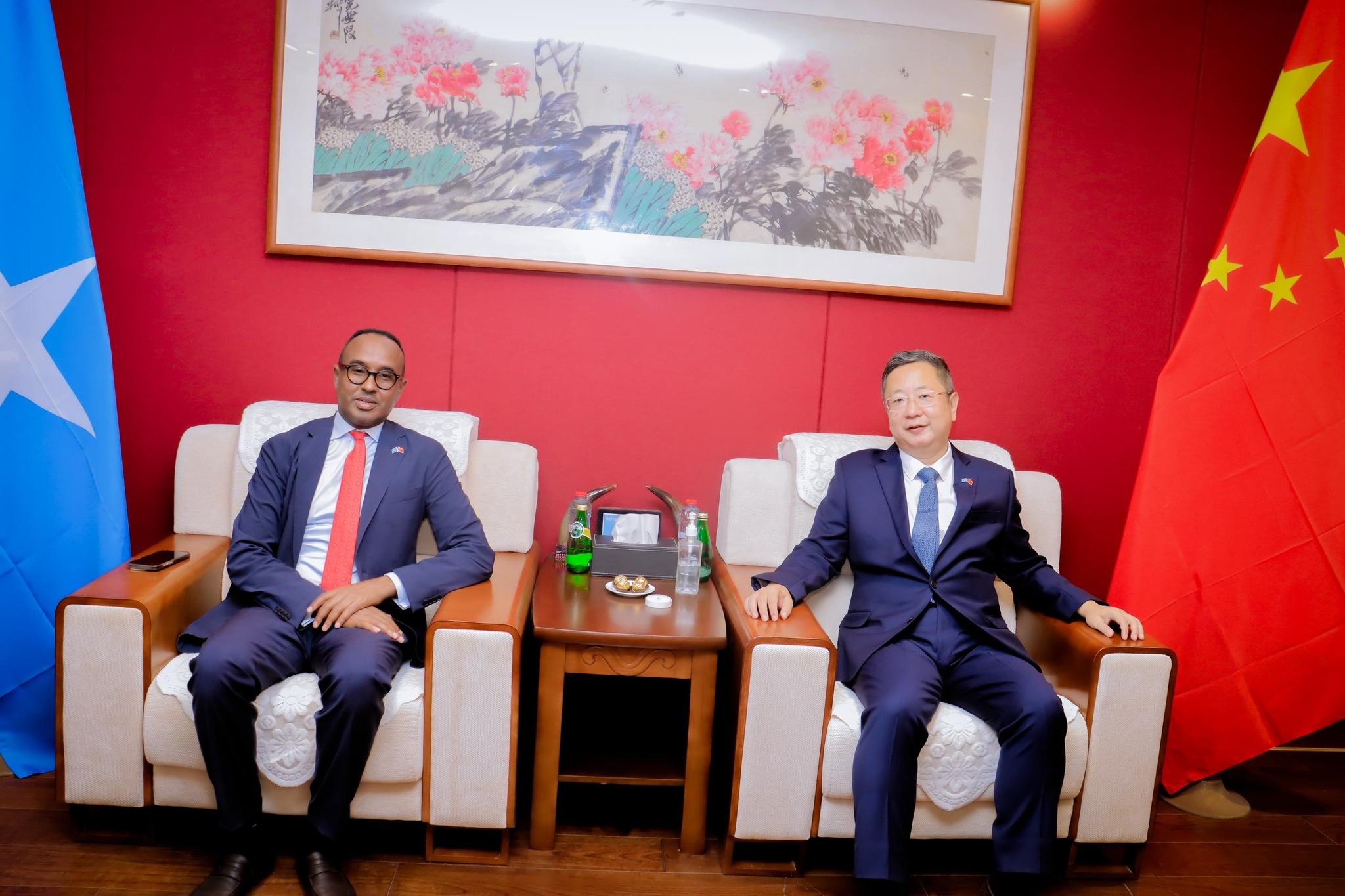 MOGADISHU, SOMALIA – In a move reflecting the deep strategic and humanitarian partnership between the Federal Republic of Somalia and the People’s Republic of China, the Commissioner of the Somali Disaster Management Agency (SoDMA), Mr. Mohamud Moallim Abdulle, held an official meeting on Tuesday with H.E. Wang Yu, the Chinese Ambassador to Somalia, at the Chinese Embassy in Mogadishu. The meeting focused on accelerating the implementation of joint projects in the disaster management sector, with the aim of strengthening Somalia’s capacity for effective response to national and humanitarian crises.