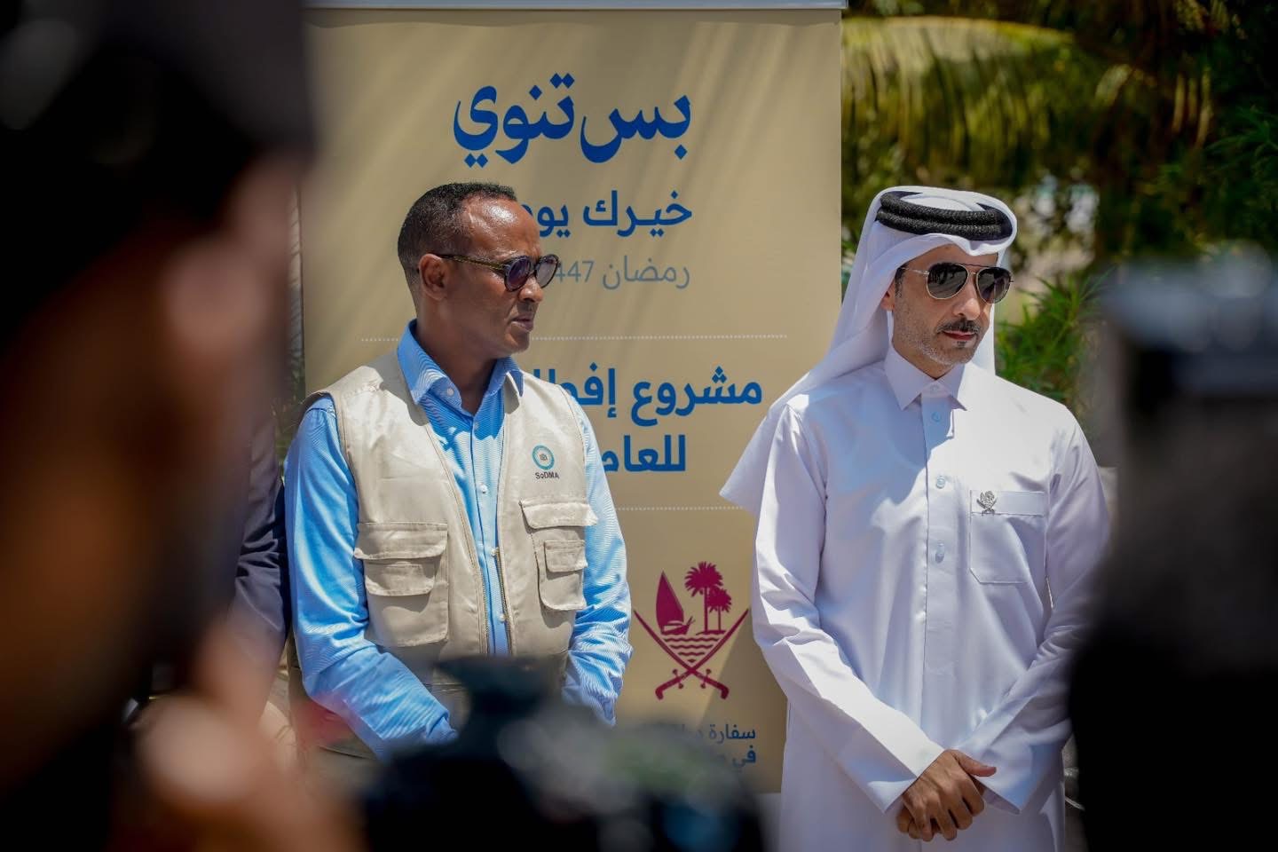 أطلق رئيس (SoDMA)، السيد محمود معلم عبد الله، وسفير دولة قطر لدى الصومال الدكتور عبد الله بن سالم النعيمي، اليوم في العاصمة مقديشو مشروعًا واسعًا لتوزيع المساعدات الغذائية.