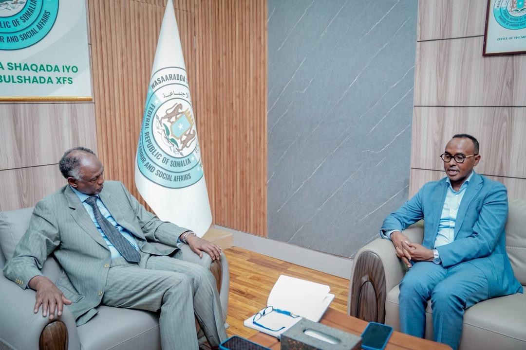 التقى رئيس الهيئة الوطنية لإدارة الكوارث في الصومال (SoDMA)، السيد محمود معلم عبد الله، اليوم في مكتبه بوزير العمل والشؤون الاجتماعية في حكومة جمهورية الصومال الفيدرالية، البروفيسور سليم علي عبرو.