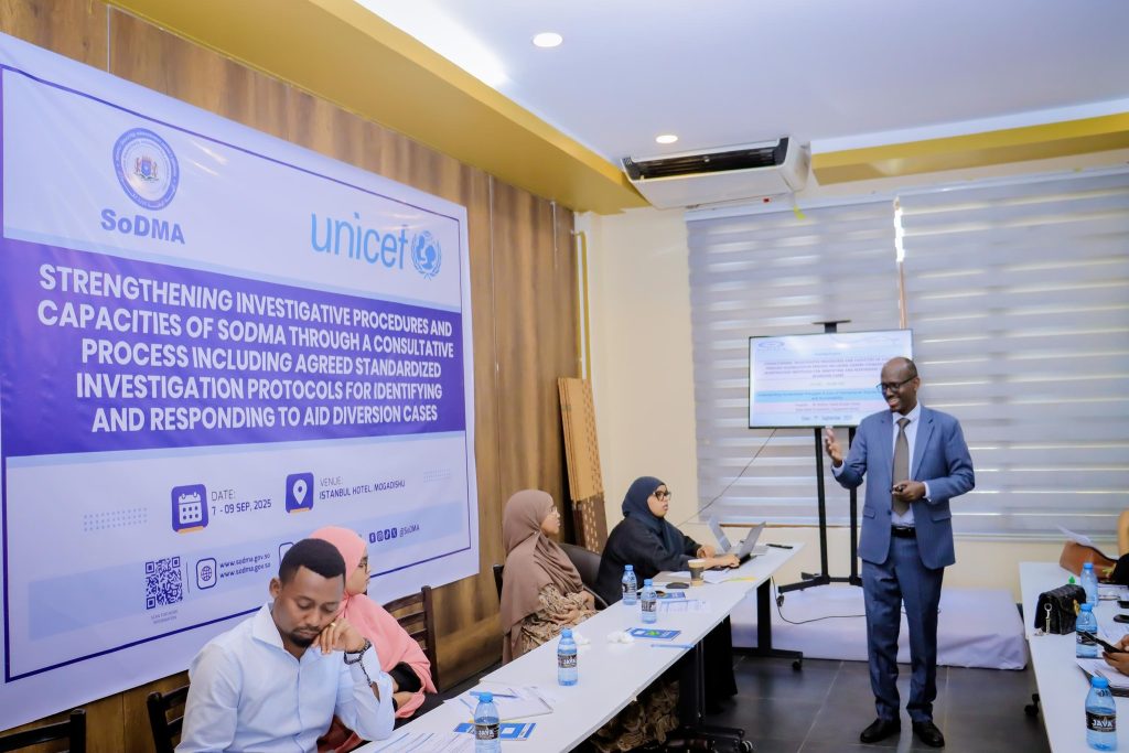 مقديشو، الصومال — أطلقت الهيئة الوطنية لإدارة الكوارث الصومالية (صـودما)، بالتعاون مع منظمة الأمم المتحدة للطفولة (اليونيسف)، ورشة عمل استشارية تستمر ثلاثة أيام في فندق إسطنبول بالعاصمة مقديشو. تركز الورشة، التي بدأت في 7 سبتمبر 2025، على تعزيز إجراءات التحقيق ومنع تحويل المساعدات الإنسانية.