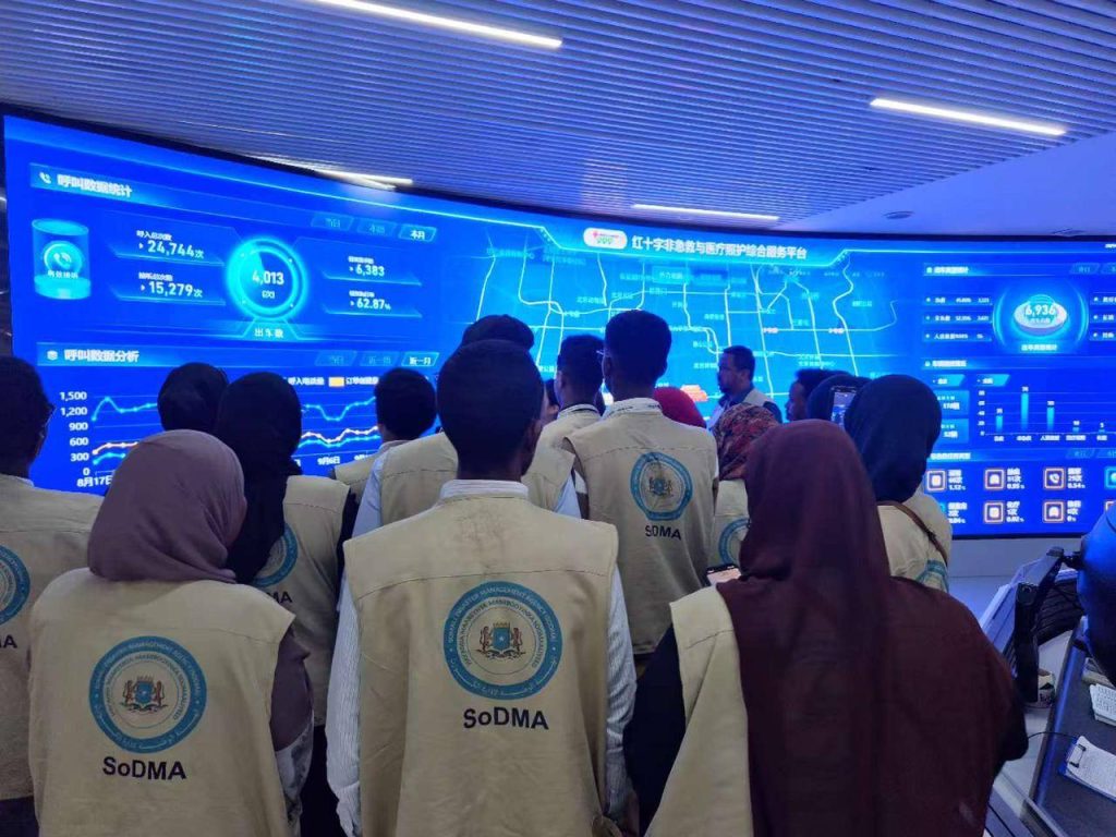 بكين، الصين — في إطار جهودها الحثيثة لتعزيز قدراتها الوطنية في مجال إدارة الكوارث والاستجابة الإنسانية، زار ضباط من الهيئة الوطنية لإدارة الكوارث الصومالية (صـودما) اليوم مركز الطوارئ لجمعية الصليب الأحمر الصيني. تأتي هذه الزيارة ضمن برنامج تدريبي مكثف يستمر لمدة 24 يومًا، يهدف إلى تزويد الفريق الصومالي بأحدث المعارف والخبرات في مجالات الحد من مخاطر الكوارث، والتأهب للطوارئ، والوقاية من الأزمات.