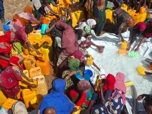 نفذت هيئة الوطنية لإدارة الكوارث (SoDMA)، بالتعاون مع وزارة الإغاثة لحكومة ولاية جنوب غرب الصومال، اليوم حملة لتوزيع المياه في منطقة هووين التابعة لمدينة بيدابو في ولاية باي، لدعم السكان الذين تأثروا بشدة بالجفاف.