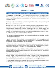 FEDERAL REPUBLIC OF SOMALIA SOMALIA DISASTER MANAGEMENT AGENCY- SoDMA