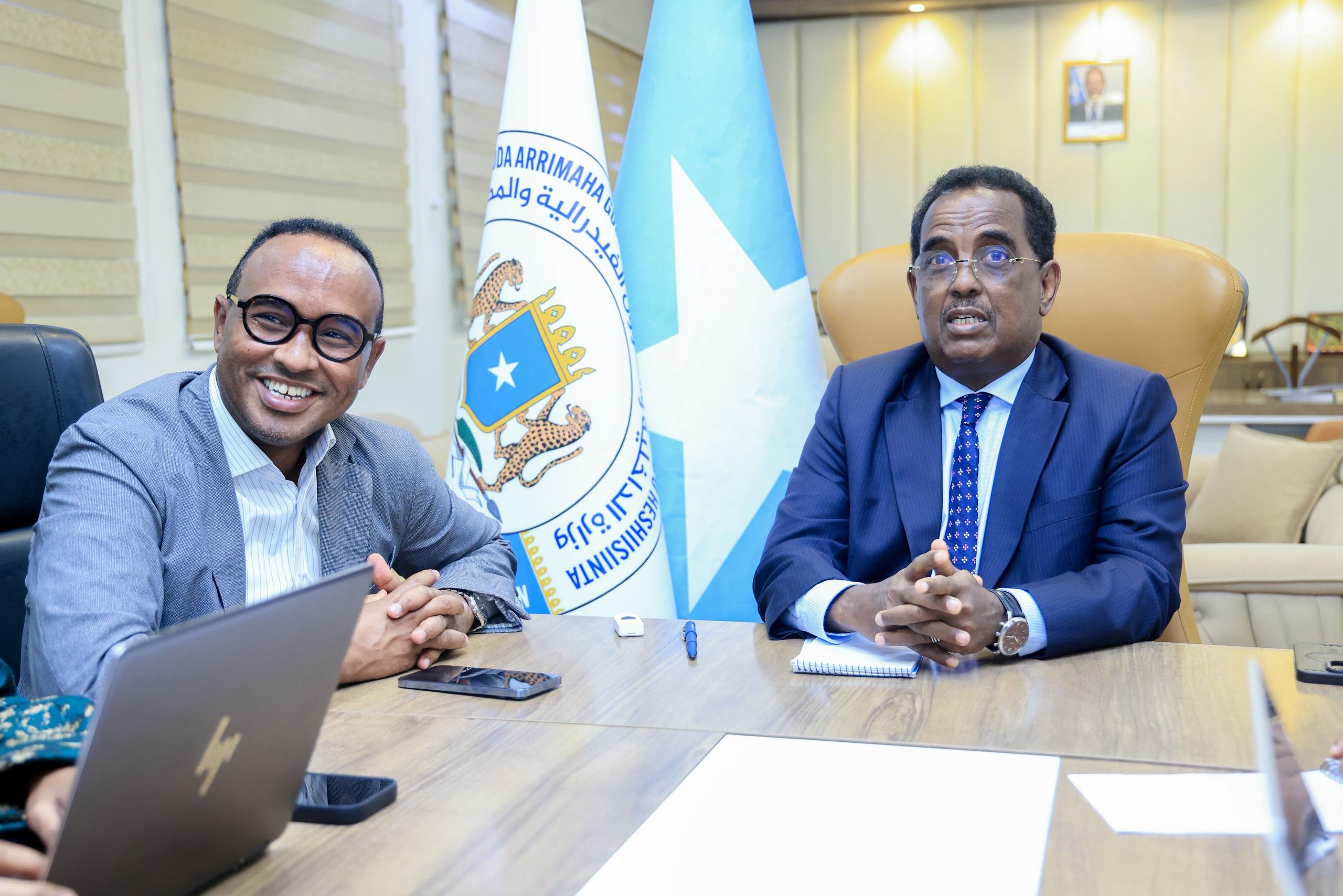 Mogadishu, Soomaalia — The Minister of Interior, Federal Affairs and Reconciliation of the Federal Government of Somalia, H.E Ali Yusuf Ali Hosh, today received the Commissioner of the Somali Disaster Management Agency (SoDMA), Mr. Mohamud Moallim Abdulle, who delivered a comprehensive briefing on the current humanitarian situation across the country.