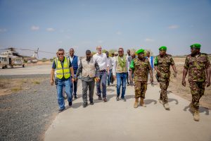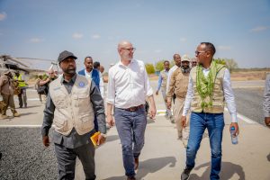 Dhoobley, Lower Juba — A high-level delegation led by the Commissioner of Somali Disaster Management Agency (SoDMA),Mr Mahmoud Maalin Abdulle, together with the Deputy Special Representative of the United Nations for Somalia and Humanitarian Coordinator, George Conway, today arrived in Dhoobley district in the Lower Juba region of Jubbaland State.