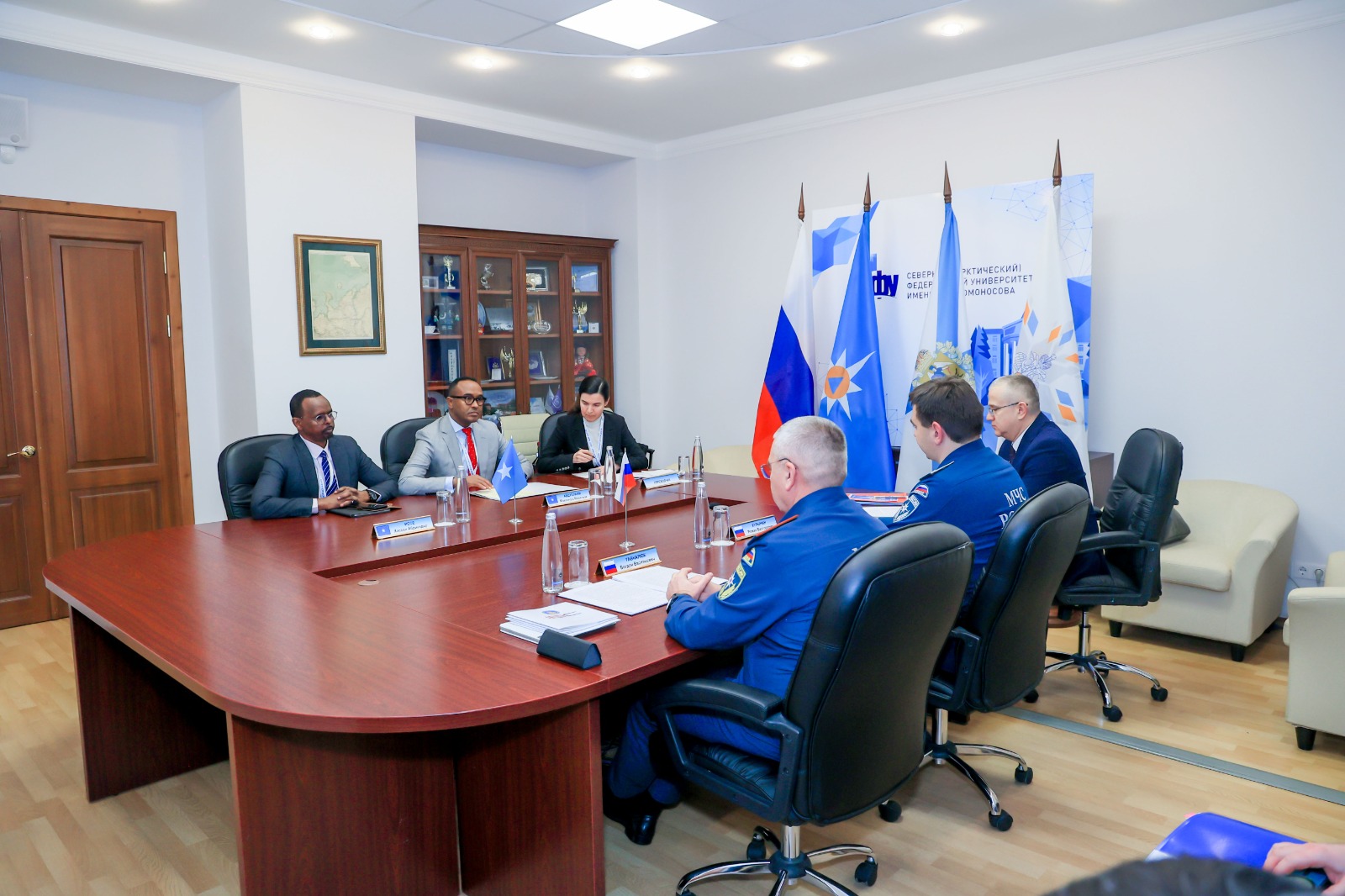 Commissioner  Mohamoud Moalim met with Mr. Roman Viktorovich Kurynin, the Deputy Minister of Civil Defense, Emergencies, and Disaster Relief during his visit to Russia. The meeting addressed the urgent humanitarian situation in the country, stressing the need for a swift response to reduce disaster risks.