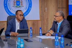 The Commissioner of the Somali Disaster Management Agency (SoDMA), Mr. Mahmoud Moallim Abdulle, received at the agency’s headquarters the Head of the World Food Programme (WFP), Mr. Hamid Noor, and a delegation he led.