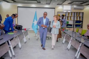 The Commissioner of the Somali Disaster Management Agency (SoDMA), Mr. Mahmoud Moallin Abdulle, received a delegation led by Ms.Merete Dyrud, Charge d’Affaires of the Norwegian Embassy to the Federal Republic of Somalia, at the National Emergency Operations Center (NEOC).