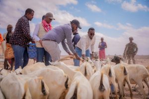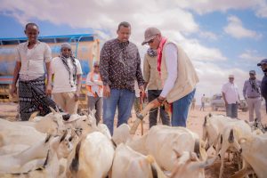 The Commissioner of the Somali Disaster Management Agency (SoDMA), Mr. Mahmoud Moallim Abdulle, accompanied by the Galmudug Drought Relief Committee, and currently on the fifth day of a drought response mission across Galmudug areas, arrived today in Af-Barwaaqo District in the Mudug Region.