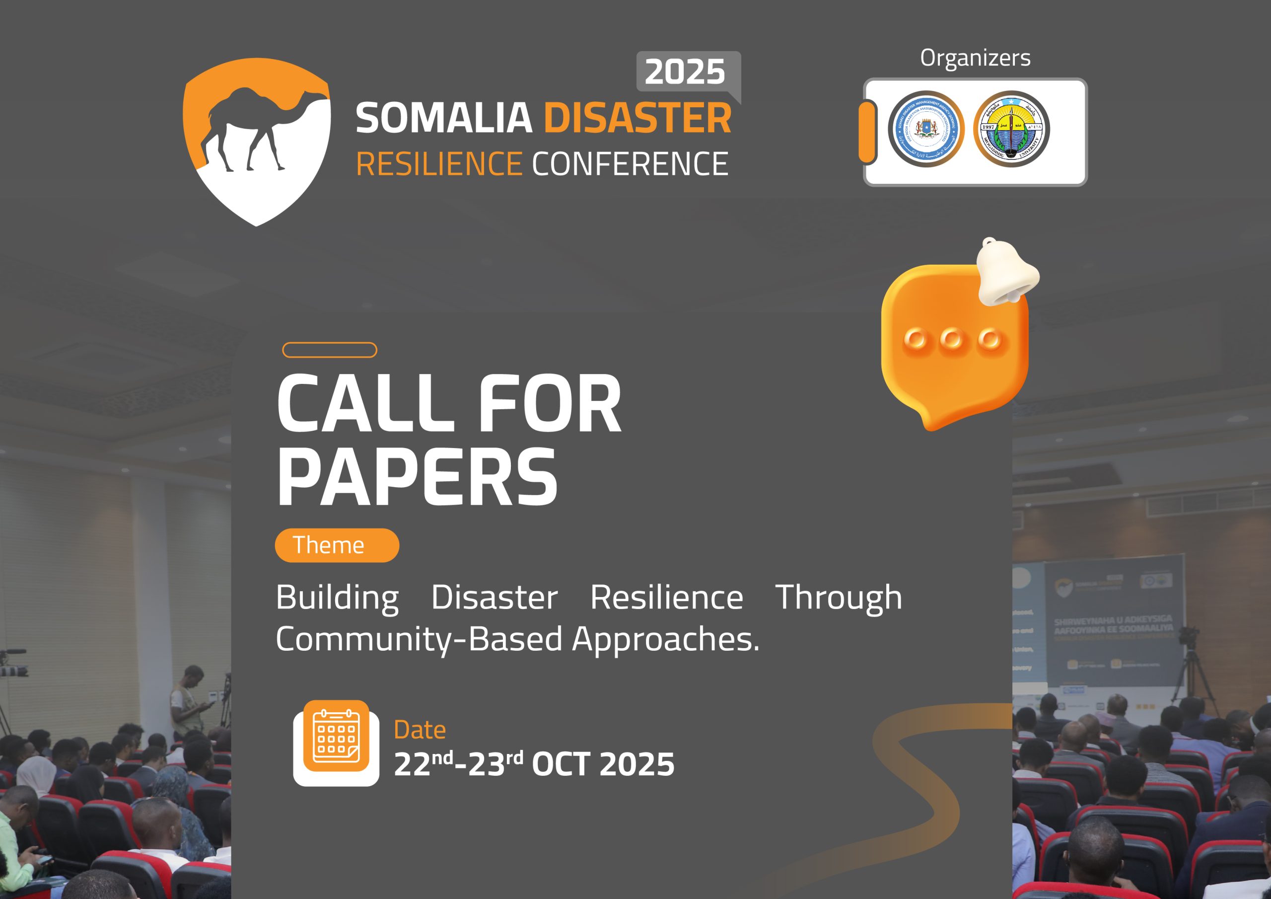 𝗖𝗮𝗹𝗹 𝗳𝗼𝗿 𝗣𝗮𝗽𝗲𝗿𝘀: The Somali Disaster Management Agency (SoDMA) in Partner with the Mogadishu University have announced the 2nd Somali Disaster Resilience Conference (SDRC) to be held on 22nd up 23rd October 2025.
