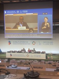 Guddoomiyaha Hay’adda Maareeynta Musiibooyinka (SoDMA) Md. Maxamuud Macallin Cabdulle iyo wafti uu hoggaaminayo ayaa Xarunta Qaramada Midoobay ee Geneva – Switzerland, kaga qeyb-galay kal-fadhigii 8-aad ee shir-weynaha madasha caalamiga ah ee Yareynta Khataraha Musiibooyinka, (Global Platform for Disaster Risk Reduction – GPDRR 2025) kaas oo afartii sanaba mar la qabto.