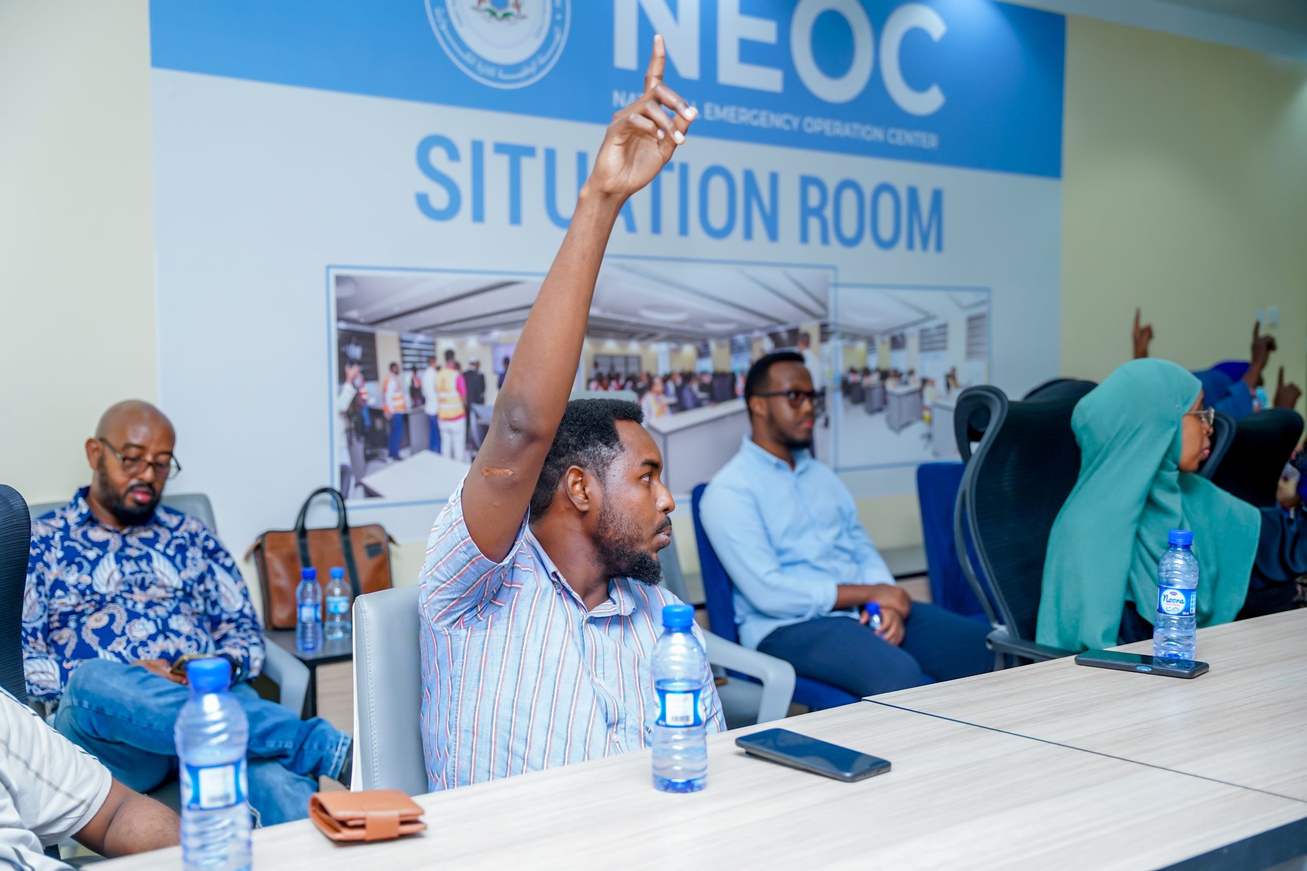 Muqdisho – 18 Juun 2025: Guddoomiyaha Hay’adda Maareynta Masiibooyinka Soomaaliyeed (SoDMA), Mudane Maxamuud Macallin Cabdulle, ayaa si rasmi ah u soo xiray Shirka Wadatashiga Dib-u-eegista Siyaasadda Qaranka ee Maareynta Masiibooyinka, kaasoo socday muddo labo maalmood ah.
