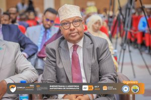Guddoomiyaha Jaamacadda Muqdisho Dr. Ibraahim M. Mursal oo qeyb ka ah madaxda ka qeyb galaysa madasha Shirweynaha 2-aad ee U Adkeysiga Aafooyinka Soomaaliya