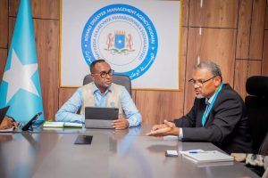Guddoomiyaha Hay’adda Maareynta Masiibooyinka Qaranka Soomaaliyeed (SoDMA), Mudane Maxamuud Macalin Cabdulle, ayaa xurunta Hay’adda ku qaabbilay Agaasimaha cusub ee Hay’adda Cunnada Adduunka (WFP) Soomaaliya, Mudane Hameed Nuru.