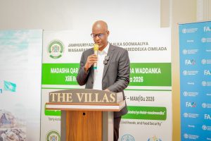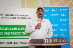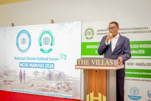 Guddoomiye Ku-xigeenka Hay’adda Maareynta Musiibooyinka Qaranka (SoDMA), Dr. Ahmed Cabdi Aadan, ayaa ka qeyb galay Shirka Madasha Qaran ee Saadaasha Cimilada oo lagu soo bandhigay saadaasha roobka Gu’ga ee sannadkaan 2026.