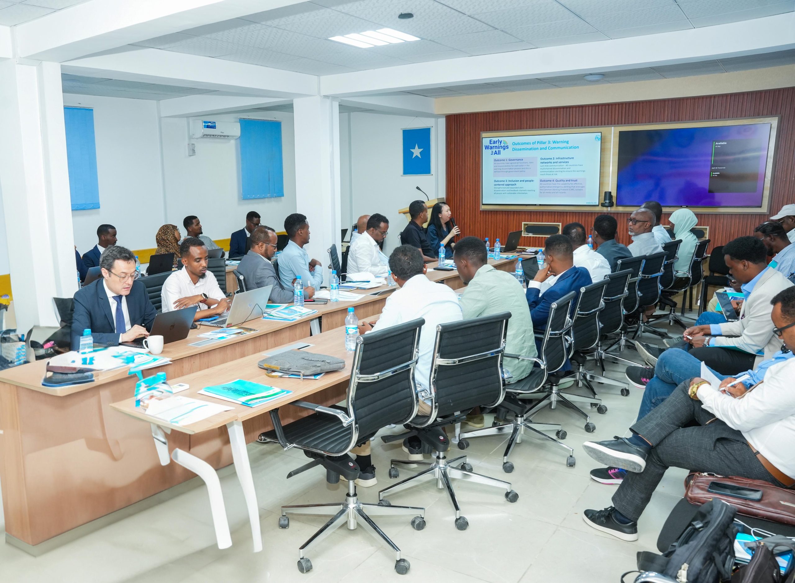 Inta lagu jiro aqoon-isweydaarsiga, waxaa si qoto dheer looga doodayaa xeerarka iyo shuruucda farsamo ee nidaamka CB-EWS, wadashaqaynta hay’adaha kala duwan, iyo qorshaha mideysan ee lagu hirgelinayo nidaamkan si bulshada Soomaaliyeed ay uga faa’iideysato digniino hore oo waxtar leh marka ay timaado xaalad degdeg ah