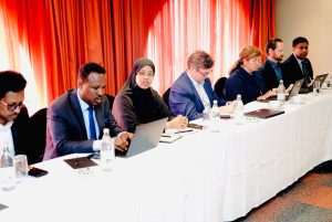 Guddoomiyaha Hay’adda Maareynta Masiibooyinka Qaranka (SoDMA), Mudane Maxamuud Macalin Cabdulle, oo ay wehliyaan Agaasimaha Guud ee Wasaaradda Maaliyadda, Mudane Sulaiman, iyo mas’uuliyiin kale oo ka tirsan dowladda federaalka, ayaa daahfuray shir muhiim ah oo lagu soo bandhigay mashruuca Catastrophe Deferred Drawdown Option (Cat DDO), oo ay dowladda Soomaaliya leedahay kana taageerayo Bangiga Adduunka.