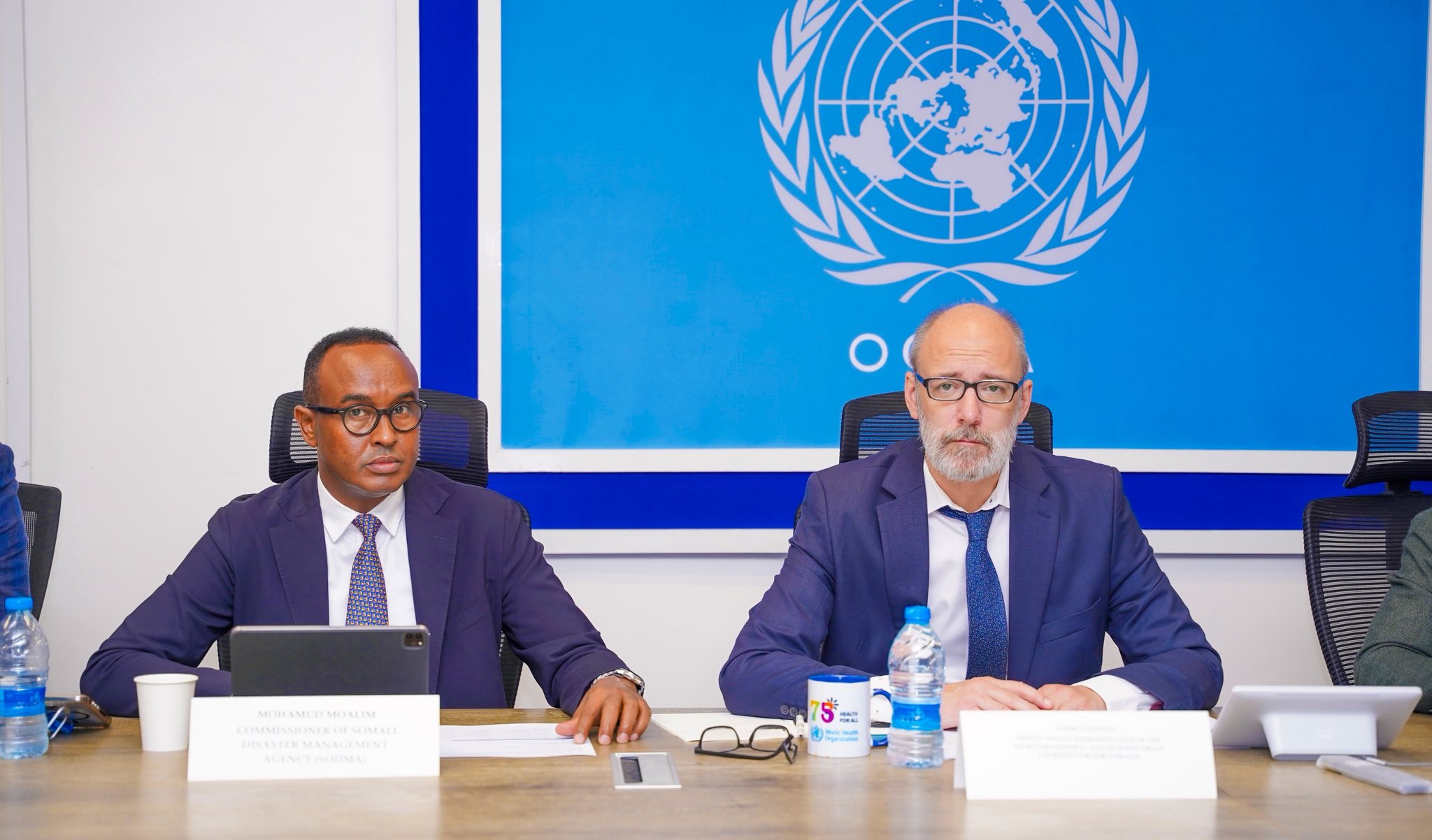 For his part, Mr. George Conway, the UN Humanitarian Coordinator for Somalia, delivered a speech in which he praised the close cooperation with SoDMA. He addressed the compounding challenges facing the country, from the effects of climate change and conflicts to disease outbreaks and funding shortfalls. He described aid workers as the “front line” who extend a helping hand to those in dire need, working together to alleviate suffering and bring hope.