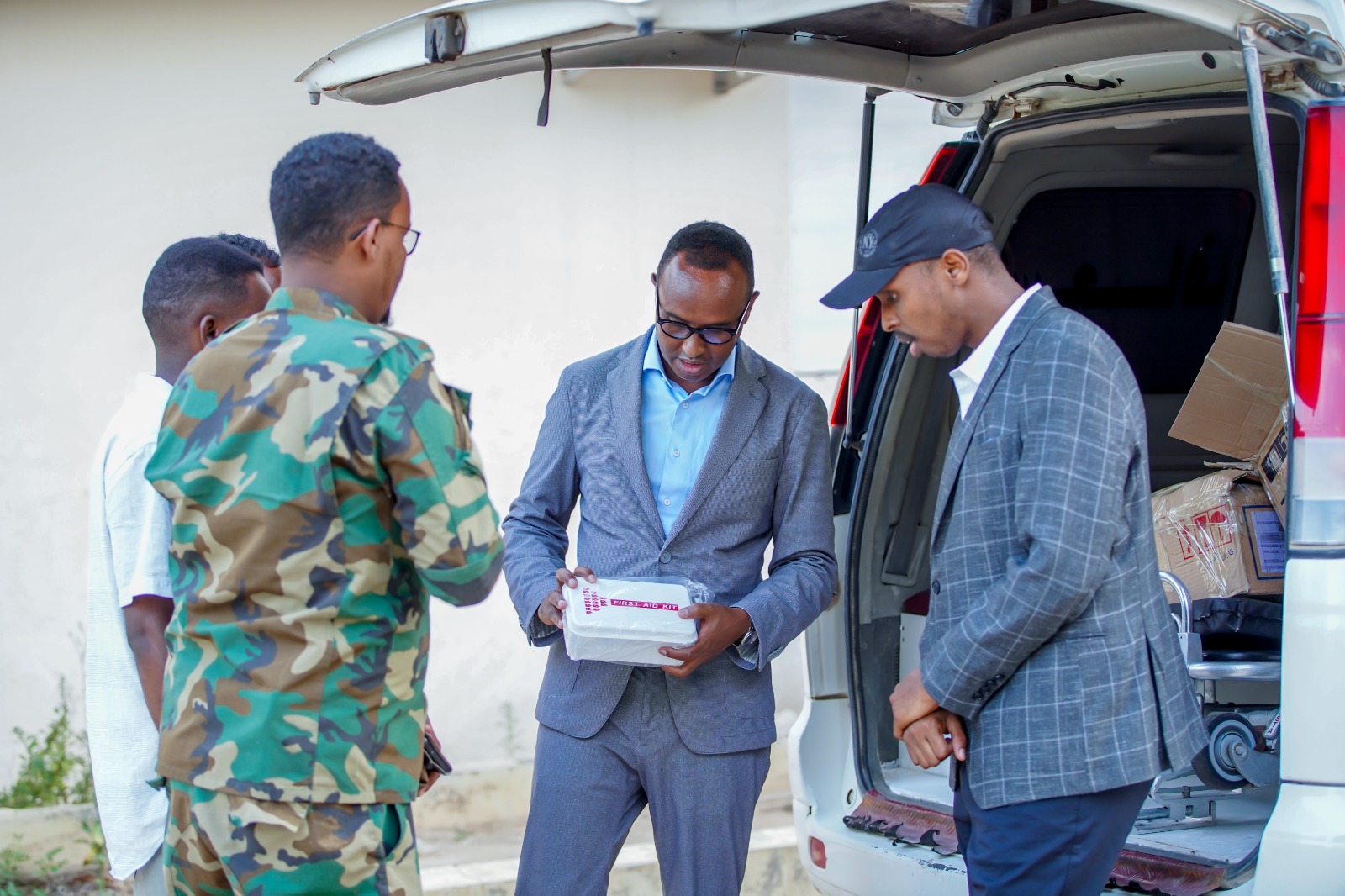 The Commissioner, a member of the National Committee dedicated to coordinating support for military efforts against #Alshabab and #ISIS terrorists presented emergency medicine and an ambulance to Dr. Sadam Abdullah Osman, the Director of the Somali National Armed Forces Hospital. These vital resources will aid the National Army and the brave individuals working to liberate the country from Kharijite threats.