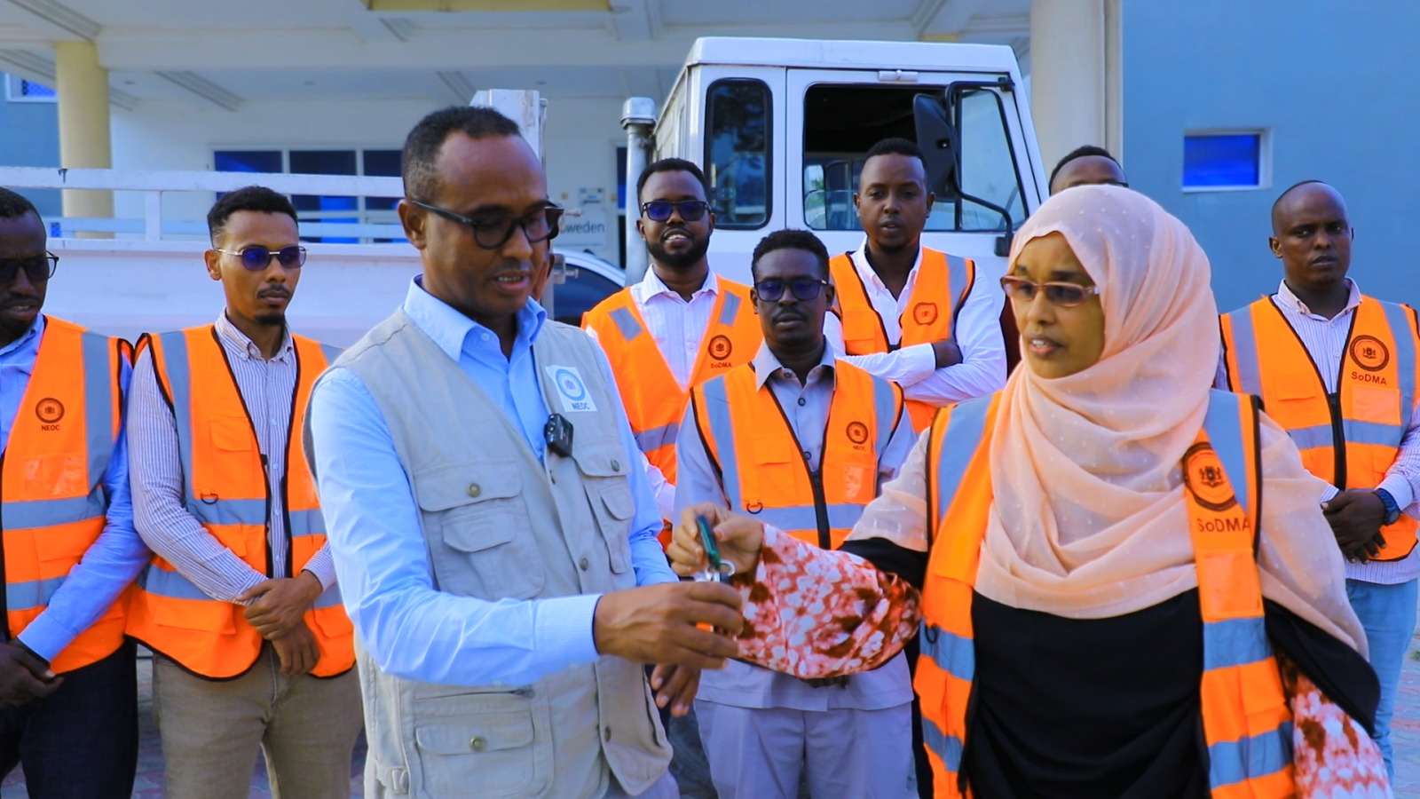 Ms. Abshiro the HR Director at SoDMA presented the truck to Commissioner Mahamud Moallim Abdulle, demonstrating the team’s commitment to enhancing disaster response efforts in Somalia.