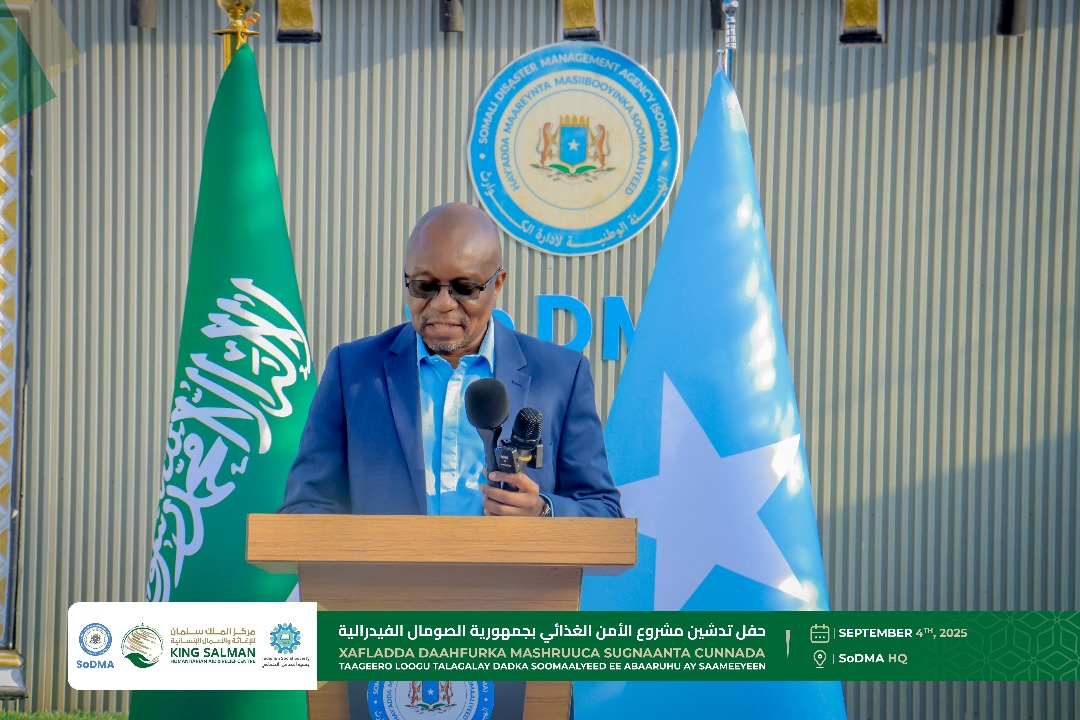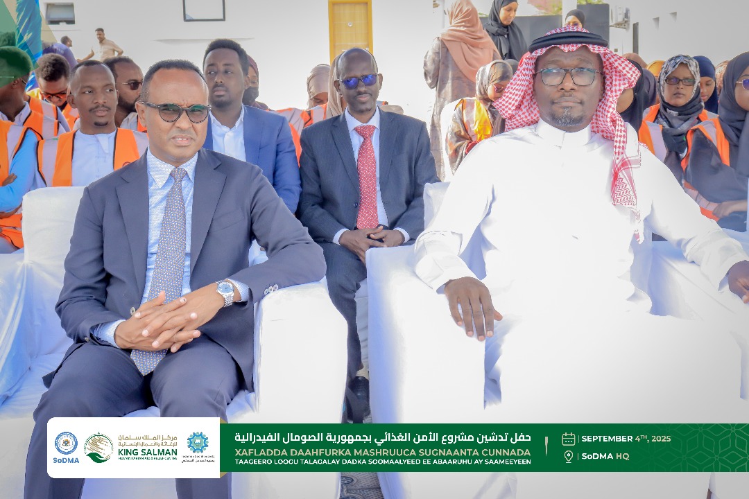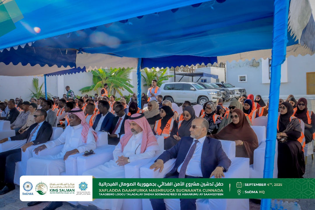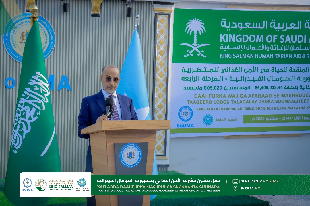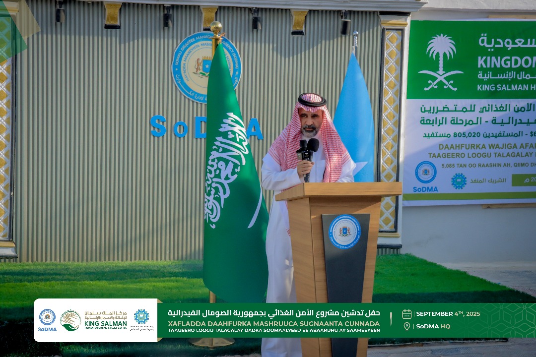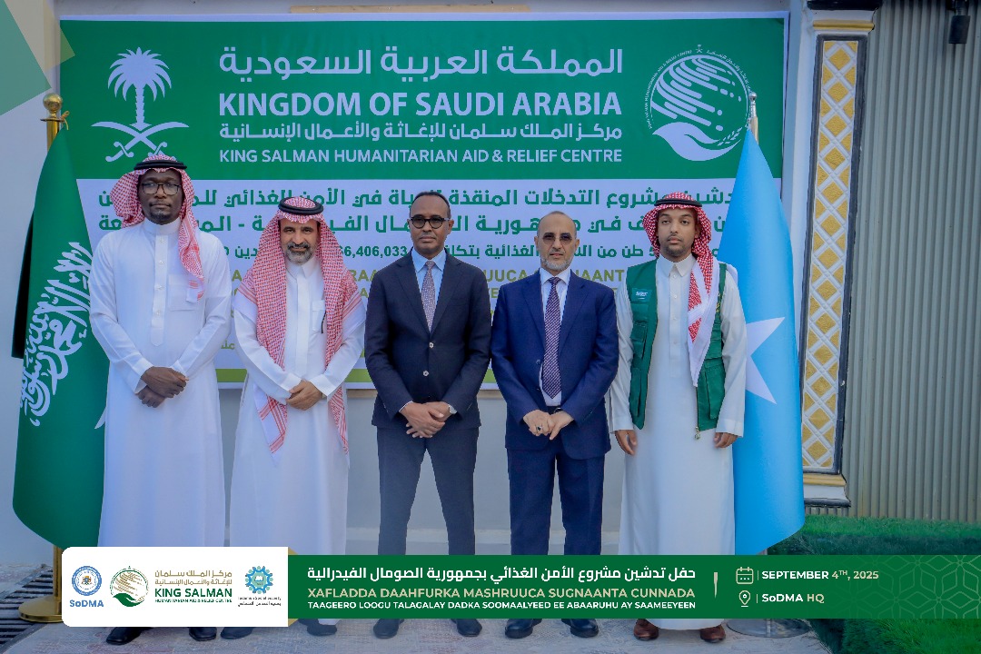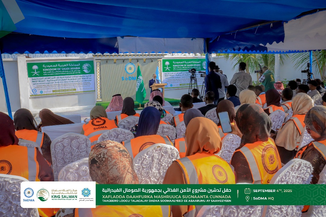 MOGADISHU, SOMALIA — The Somalia Disaster Management Agency (SoDMA) hosted the inauguration ceremony for the fourth phase of the Food Security Project, funded by the King Salman Humanitarian Aid and Relief Centre (KSrelief), at its headquarters in Mogadishu on Thursday, September 4, 2025. This project aims to provide relief to more than 805,000 people affected by drought and natural disasters by distributing 5,085 tons of food aid.