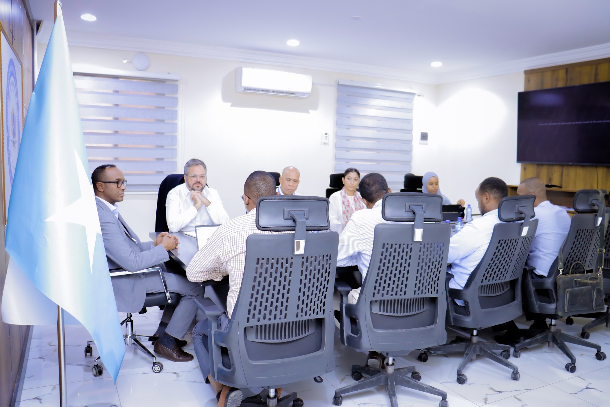 Muqdisho, Soomaaliya — Tallaabo muujinaysa sida ay Soomaaliya uga go’an tahay xoojinta awooddeeda qaran ee ay kula tacaalayso caqabadaha bani’aadamnimo, ayaa Guddoomiyaha Hay’adda Maareynta Masiibooyinka Soomaaliyeed (SoDMA), Mudane Maxamuud Macallin Cabdulle, maanta xarunta hay’adda ku qaabilay Madaxa Hay’adda Socdaalka Caalamiga ah (IOM) ee Soomaaliya, Mudane Manuel Marques Pereira, iyo wafdi khubaro ah oo la socotay.