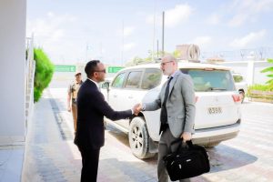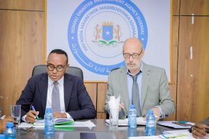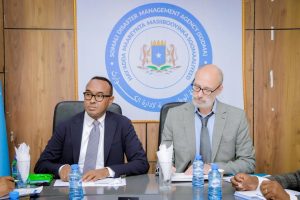 Muqdisho, 6-da October 2025 – Guddoomiyaha Hay’adda Maareynta Masiibooyinka Qaranka (SoDMA), Maxamuud Macalin Cabdille, iyo Madaxa Isku-duwidda Gar-gaarka Bani’aadanimo ee Soomaaliya, Mr. Georg Conway, ayaa maanta ku yeeshay shirkii billaha ahaa xarunta SoDMA ee Muqdisho.