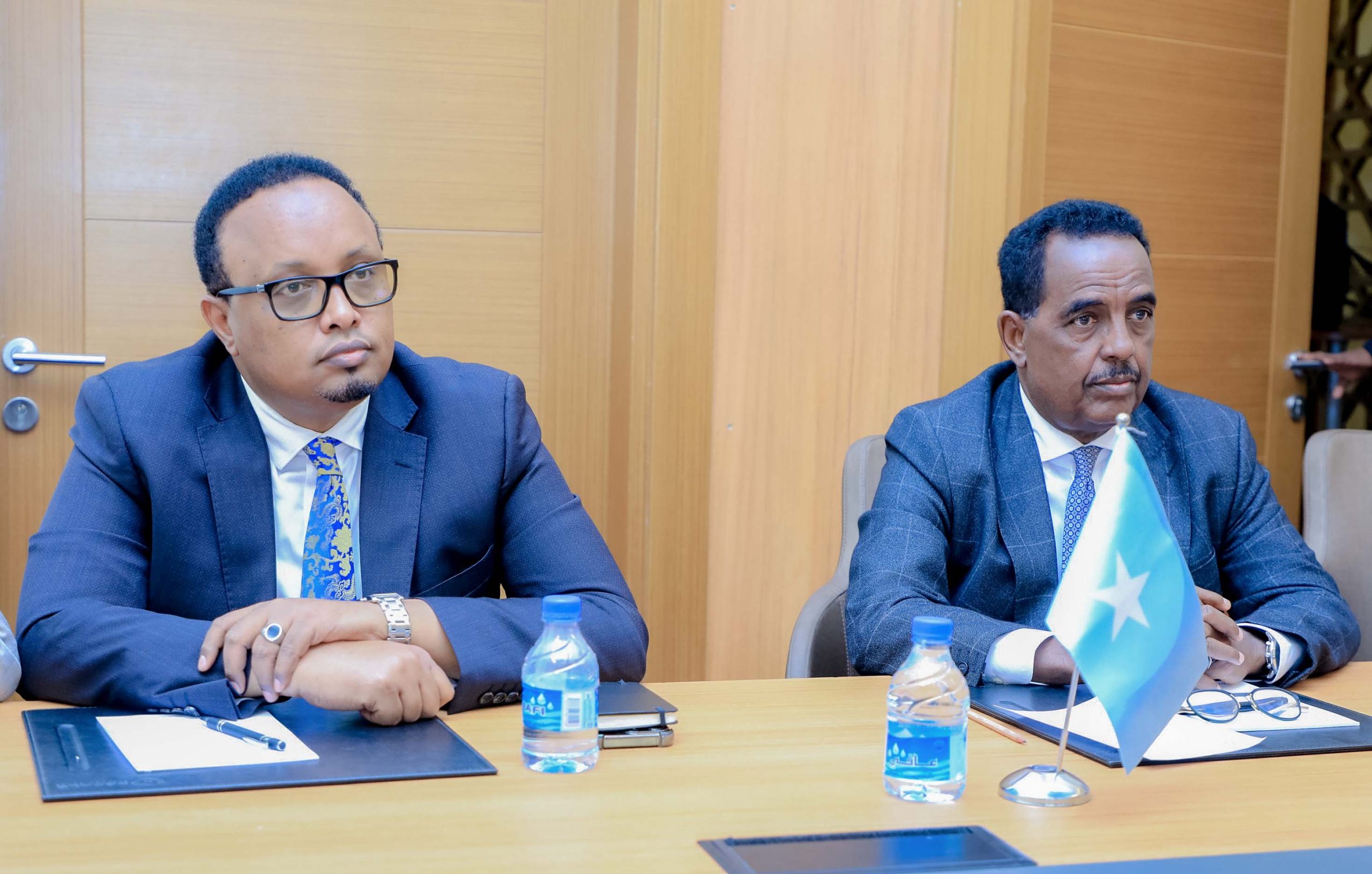 The Minister of Interior, Federal Affairs & Reconciliation of the Federal Government of Somalia, H.E. Ali Yusuf Ali (Hoosh), engaged in a productive meeting with his Iraqi counterpart, H.E. Abdul-Amir Al-Shammari. This significant dialogue took place during the official visit of Al-Shammari and his delegation to Mogadishu, fostering stronger ties and cooperation between the two nations.