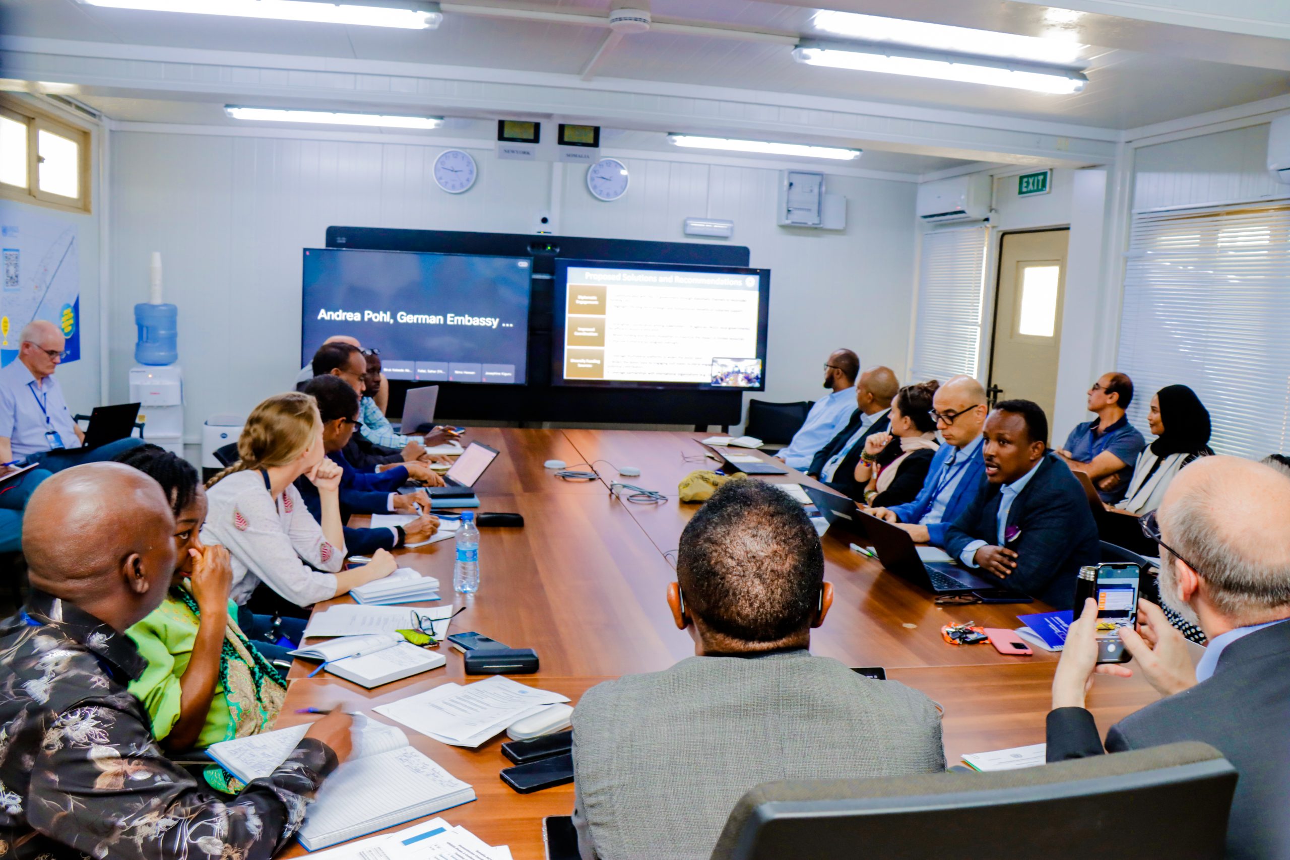 The Commissioner of the Somali Disaster Management Agency (SoDMA) and Mr. George Conway, the Deputy Special Representative of the UN Secretary-General and Humanitarian Coordinator, co-chaired a meeting of the Humanitarian Country Team (HCT) to address critical challenges facing Somalia’s humanitarian response.
