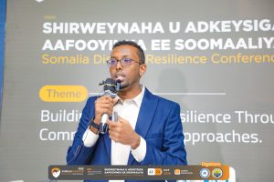 Maxamed Yuusuf Aadan oo ah cilmi-baarre iyo bare sare oo ka tirsan Jaamacadda Muqdisho, haatana ku jiraa diyaarinta Cilmiga PhD-da ee Barashada Nabadda iyo Maamulka ee UPEACE, ayaa Meertada 2-aad ee shirweynaha u adkeysiga aafooyinka Soomaaliya la wadaagay daraasad ciiwaankeenkeedu yahay: “Sida isbeddelka cimilada (climate stress) uu u saameeyo amniga dadka Soomaaliyeed iyo sida loo adeegsan karo ilaalinta degaanka iyo maamulka kheyraadka si loo dhiso nabad waarta”.