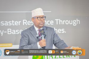 Wasiirka Wasaradda Gaashaandhigga ee Dowladda Federaalka Soomaaliya, Md. Axmed Macallin Fiqi, oo ka mid ahaa madaxda ka qeybgalaya Shirka 2-aad ee U Adkeysiga Aafooyinka Soomaaliya, ayaa madasha ka jeediyay hadal kooban oo ku saabsan muhiimadda ay leedahay ka hortagga iyo wax-ka-qabashada musiibooyinka dalka, iyadoo loo marayo cilmi-baaris iyo daraasado xog-ogaalnimo iyo aqoon ku dhisan.
